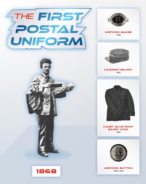 Mail carriers didn’t always wear their iconic uniforms. In fact, the first uniform was introduced in 1868 — more than 200 years after mail was first sent across the American colonies!
